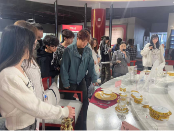 艺术实践期间,两次自主调研成为课程亮点。同学们走进雕塑瓷厂、陶溪川、陶阳新村等地,走访陶艺工作室、市集与村落,收集创作灵感并完善设计方案,实现从“学”到“用”的思维转化。10月28日,师生们赴国瓷红叶厂参观日用瓷生产车间与展厅,在工作人员的讲解下了解现代陶瓷产业流程。