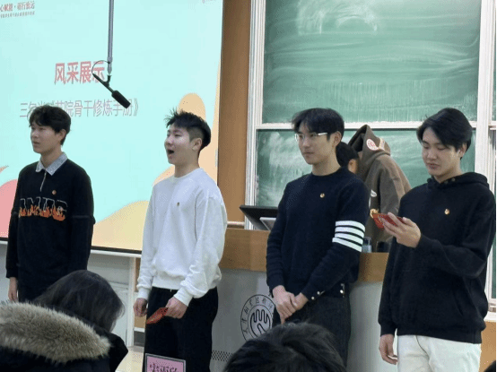 会议第二项由航服2024级四位同学结合自己的兴趣特长与学习感受,带来了一段朗朗上口的三句半表演《艺院骨干修炼手册》,带大家一起回顾培训中的点滴成长。